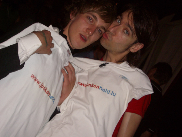 Hei den Tobi Schlegel, Moderator beim Daitschen Musiksender VIVA an Sänger vun der FAMILIE SCHLEGEL. Och heen war bereed den www.jonkenheld.lu Tshirt unzedoen an sech fotografeiren ze loossen. MERCI |